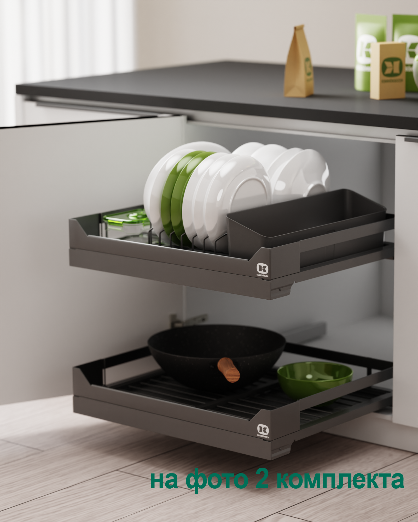 - 1 большой модуль для посуды + 1 большой модуль с решеткой + модуль для столовых приборов
