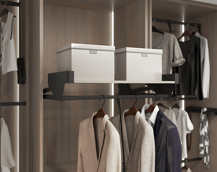 Пантограф с полкой в гардеробную Конеро состоит из: