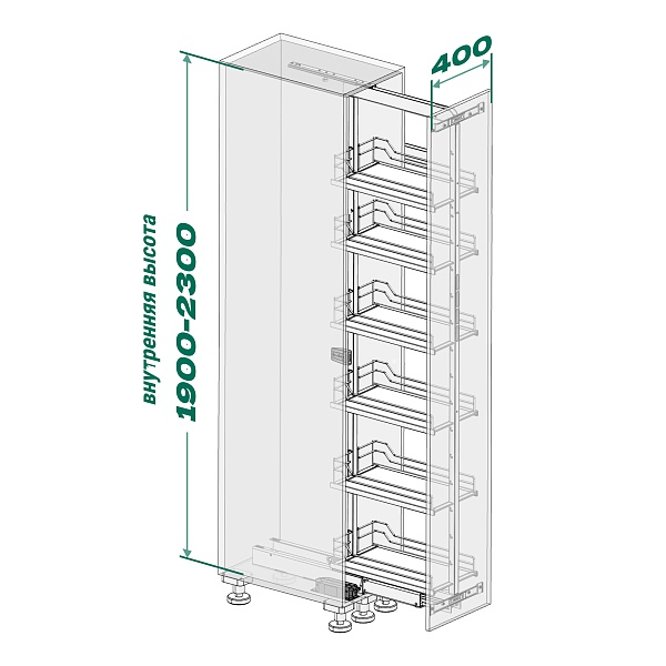 • Высокая нагрузка на механизм в 100 кг (по 18 кг на полку) позволяет организовать хранение большому количеству предметов, при этом даже при полной загрузке система выдвигается легко.